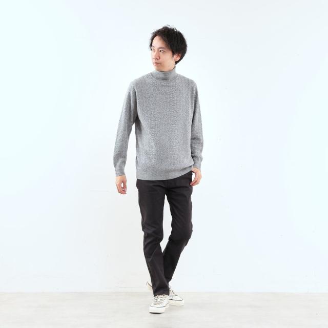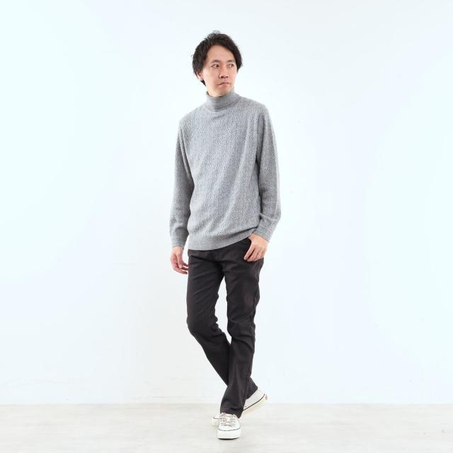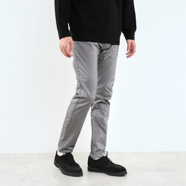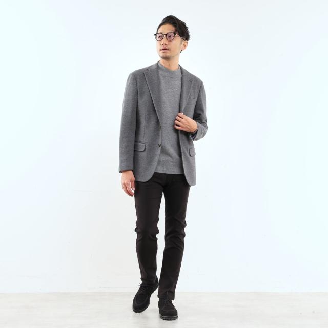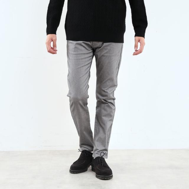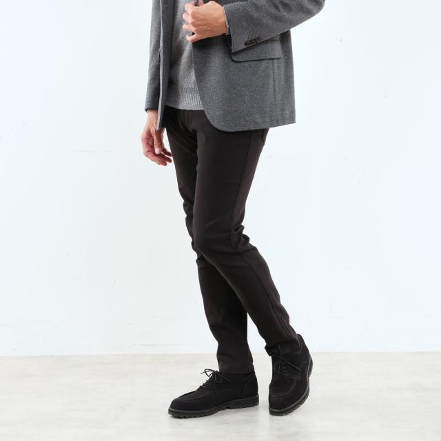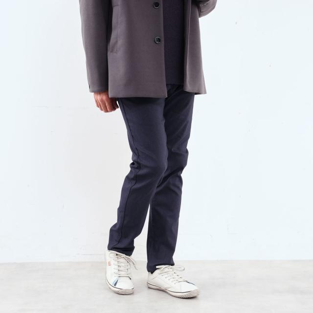 キレイ目な雰囲気のピケとヘリンボーン組織の裏面に起毛を加え、保温性と肌触りの良さを加えたプレミア感のあるハイパーストレッチ素材です。