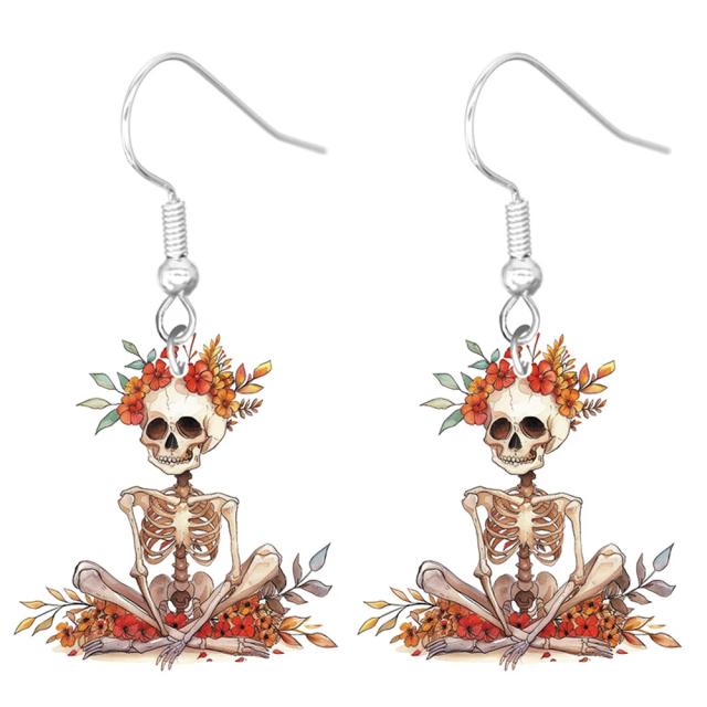 お花で飾った髑髏をデザインした不気味なファッションピアス。