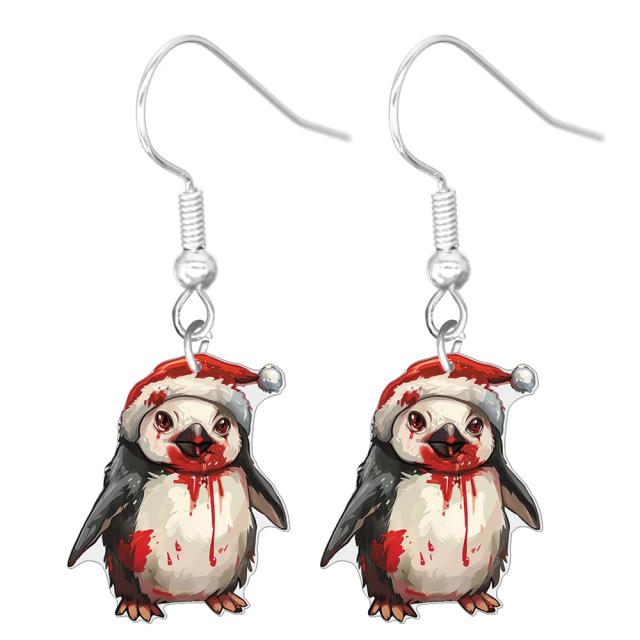 クリスマスにいったい何があったんだ!と、聞きたくなる血だらけのサンタクロースの帽子を被ったペンギンをデザインしたファッションピアス。