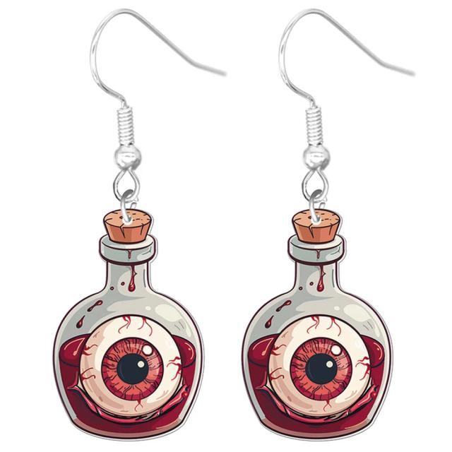 血液の入ったガラスボトルにメダマを入れた不気味なファッションピアス。