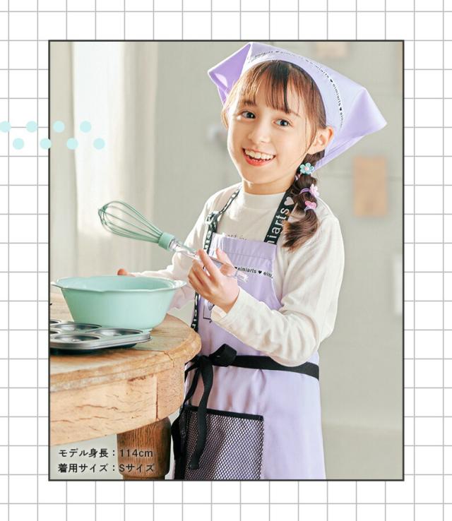 エプロン 子供 女の子 キッズ おしゃれ エプロン+三角巾の2点セット 小学生 小学校 調理実習 お絵かき お手伝い 通園 通学 幼稚園 保育園 入学準備 ラベンダー ライムグリーン ブラック