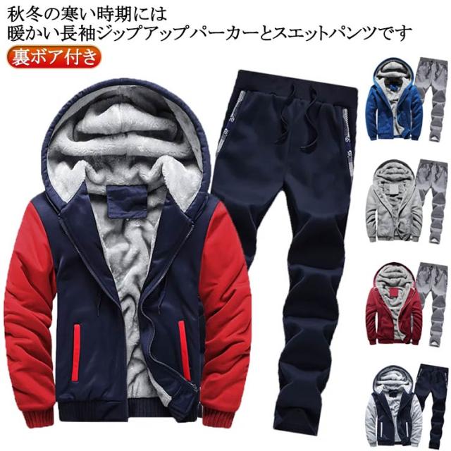 あったか 裏ボア付き メンズ スウェットセットアップ スウェット ジャージ セットアップ スウェットセットアップ ボアパーカー 長袖 防寒着 秋 冬 パーカー 厚手 上下セット スウェットパンツ ジップアップパーカー スポーツウェア ジョガーパンツ 秋冬 送料無料 部屋着