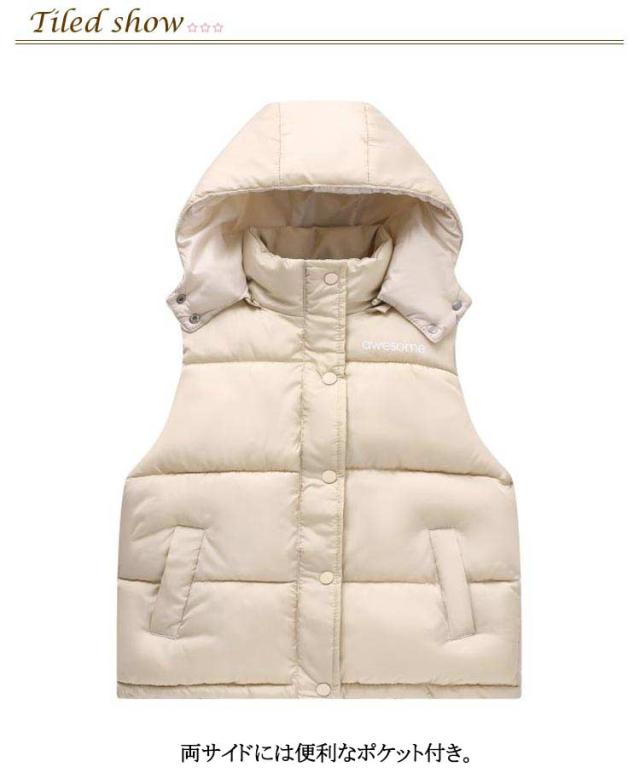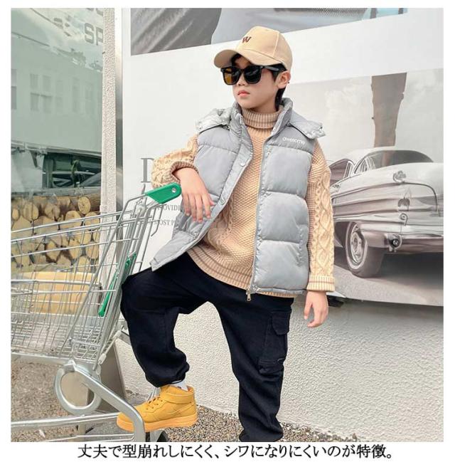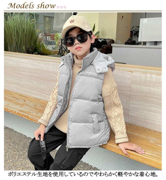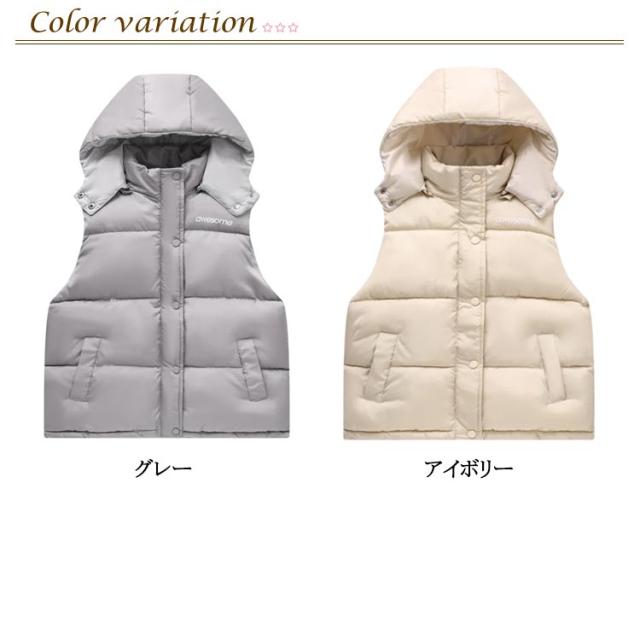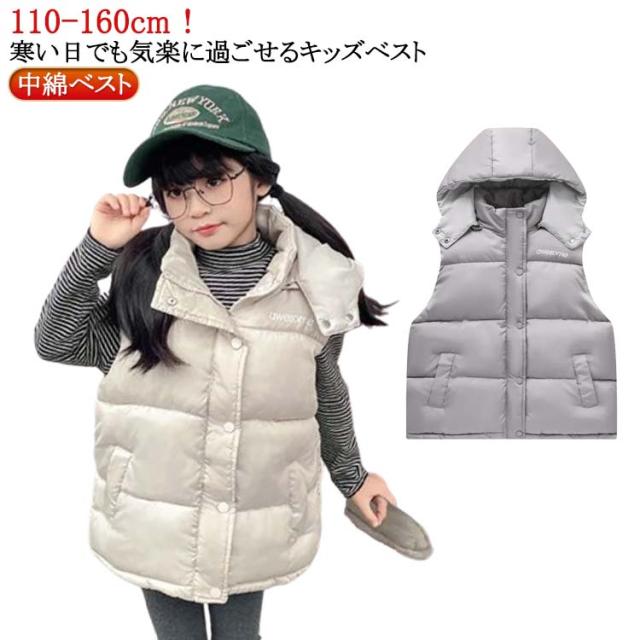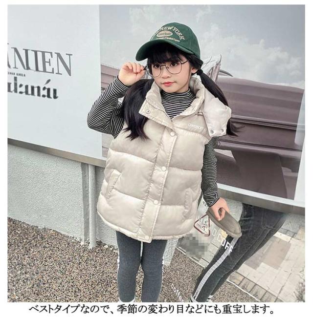 アウター ダウン風ベスト ぬくぬく アウター ジュニア フード付き 前開き 男の子 女の子 寒さ対策 前ボタン 子供用 キッズ 中綿ベスト あったかい 防寒 中綿ベスト 暖かい 上着 冬 こども服 子ども服 裏ボア カジュアル 秋冬 羽織り 110 120 130 140 150 160