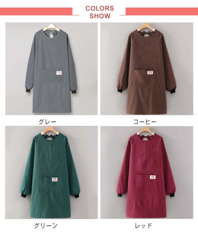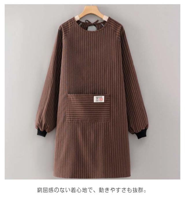 | 台所仕事や掃除などの家事をするときに大活躍する割烹着 ゴム入りの袖で家事もラクラク! 窮屈感のない着心地で、動きやすさも抜群。 ポケット付きで収納便利です。 サッとかぶり腰ヒモを結ぶだけで脱着可能。 お料理や家事用のエプロンとしてはもちろん、ガーデニング時などにも活躍。 | |