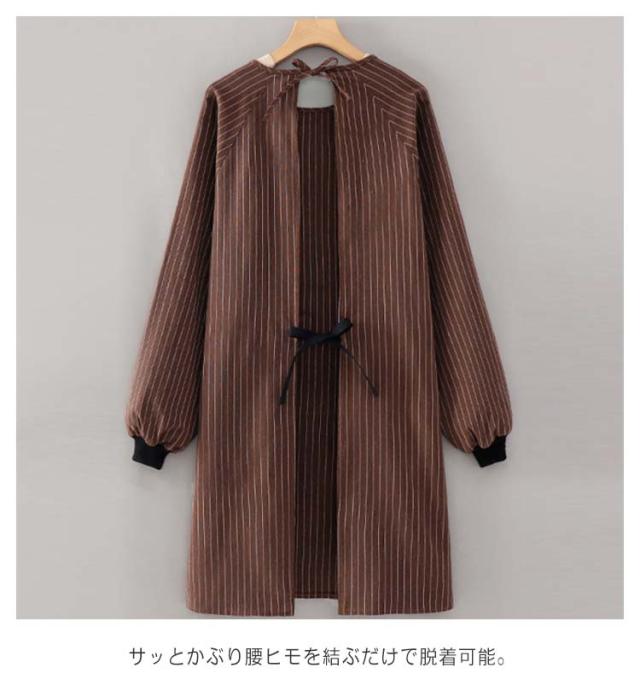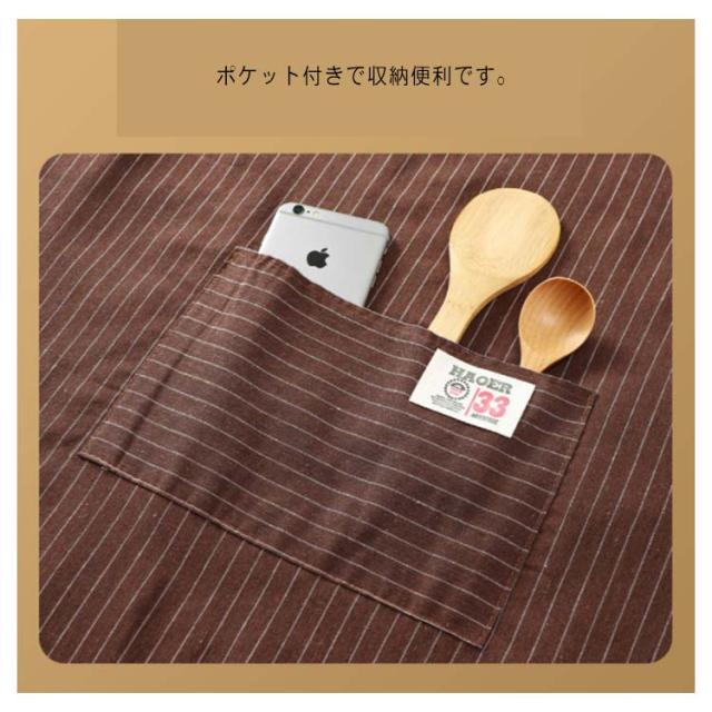 エプロン キッチン 大きいサイズ ロング丈 後ろ紐留め ポケット付き ストライプ柄 レディース メンズ 割烹着 保育士 ポケット付き 料理教室 ガーデニング 汚れ防止 エプロン 防油 作業用 ワーク服 男女兼用 蒸れない