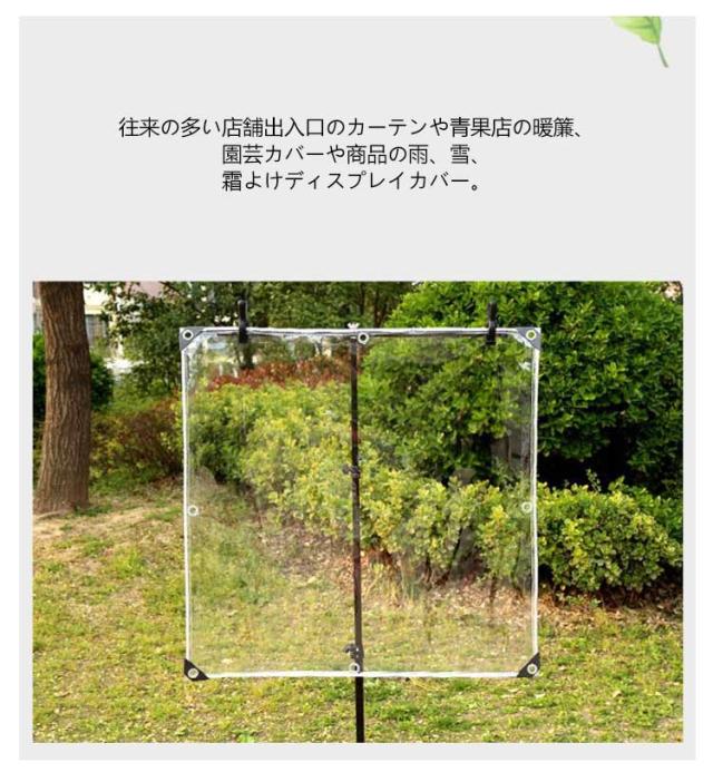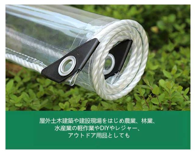 | 中が見える透明性が必要な場所に最適な防水シート。 厚手なPVC製で、柔らかくて丈夫、引っ張りに強く、耐候性、防水力にも優れています。 収納する際も簡単に折り畳むことができます。 往来の多い店舗出入口のカーテンや青果店の暖簾、園芸カバーや商品の雨、雪、霜よけディスプレイカバー。 各種養生、資材野積み、風雨や暴雨の緊急を要する際の防水簡易カバーや屋外防寒対策、防災等。 屋外土木建築や建設現場をはじめ農業、林業、水産業の軽作業やDIYやレジャー、アウトドア用品としても 間仕切りや敷物として使用され、プロから一般家庭まで幅広くご使用頂いております。 | |