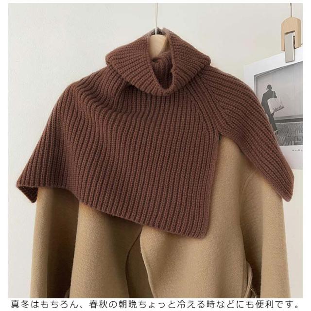 防寒物 肩ウォーマー レディース タートルニット 送料無料 付け襟 ニット マフラー スリット 冬用 暖かい ネックウォーマー 冬物 重ね着 シンプル