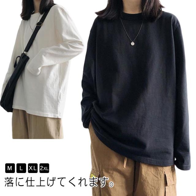 インナー シンプル Tシャツ 長袖 無地 カットソー クルーネック 重ね着 ロンT ロンT ビッグシルエット カジュアル 黒 薄手 レディース オーバーサイズ 通勤 通学 ホワイト ブラック 重ね着風 ユニセックス 白 ギフト