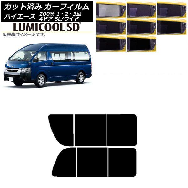 カーフィルム ハイエース200 1/2/3型 バン 4ドア スーパーロング/ワイド リア 2列目 左右開閉窓 最高品質 ルミクールSD 選べる8フィルムカラー AP-WFLC0137-RD1B フィルムカラー: NS003HC NS008HC NS015HC NS020HC NS030HC NS045HC UV8000 MT20