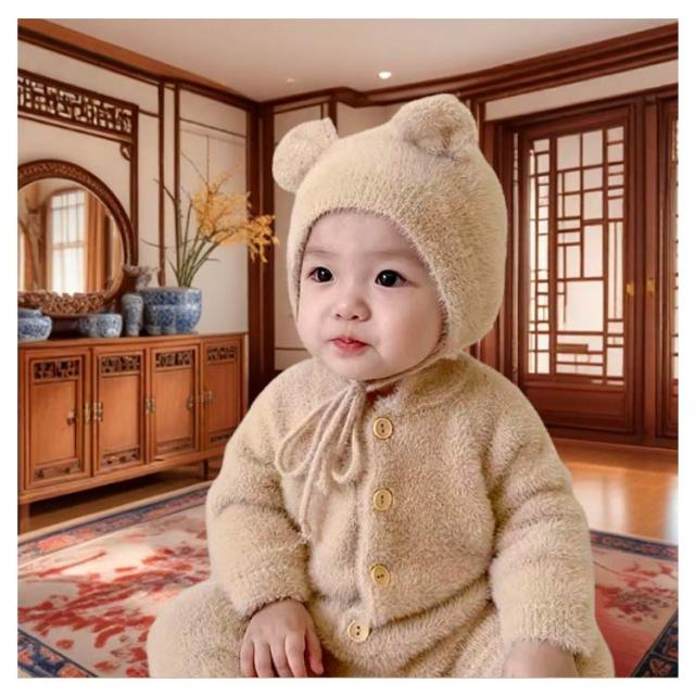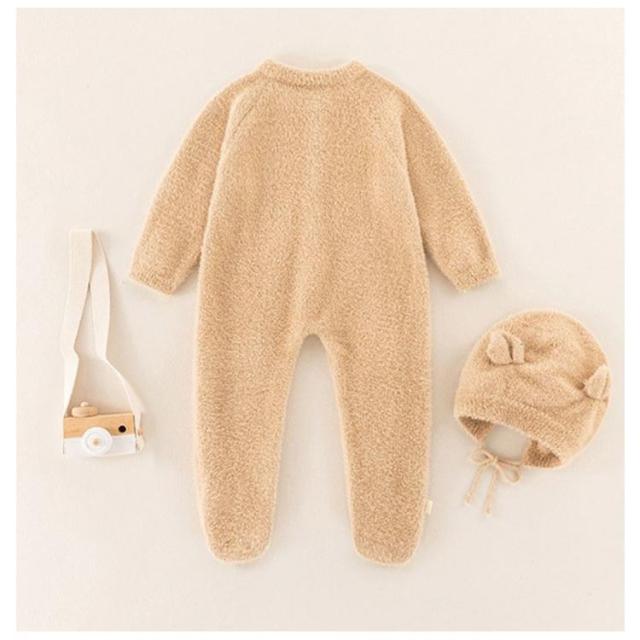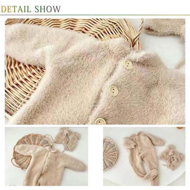 着ぐるみ ベビー カバーオール 可愛い ロンパース 長袖 ジャンプスーツ 帽子付き くまちゃん 暖かい 防寒 ベビー 新生児服 男の子 女の子 秋
