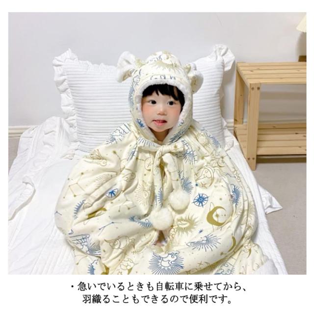 ポンチョ 子ども乗せ自転車用 防風 ベビー フード付き 防寒 子ども乗せ自転車用 赤ちゃんコート 厚手 ブランケット あったか マント 中綿 冬用 防風 子供 簡単装着 保育園 幼稚園 自転車 送迎 通園