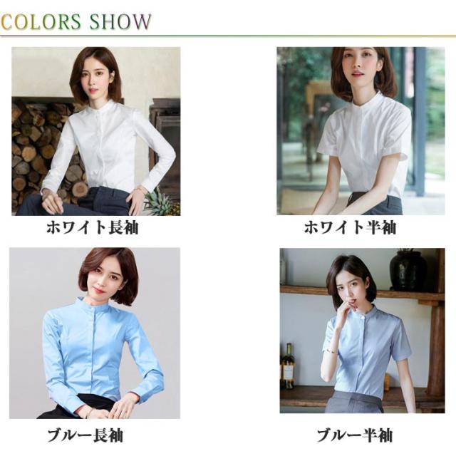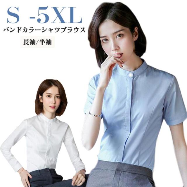 スタンドカラー バンドカラー 半袖 オフィスカジュアル フォーマル 制服 フォーマルシャツ 大きいサイズ ワイシャツ ビジネスシャツ 長袖 フォーマルシャツ ビジカジ おしゃれ 事務服 OL オールシーズン 春 夏 秋
