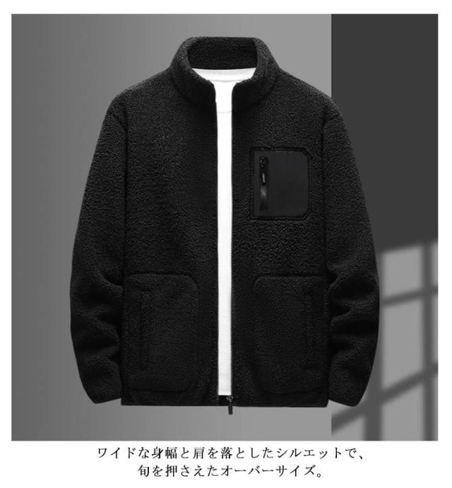 ボアジャケット メンズ アウター ボアブルゾン 秋冬服 もこもこ スタンドカラー 防寒 ブルゾン 胸ポケット付き ゆったり 大きいサイズ 防風 保温 厚手 アウトドア ブルゾン 暖かい スポーツ