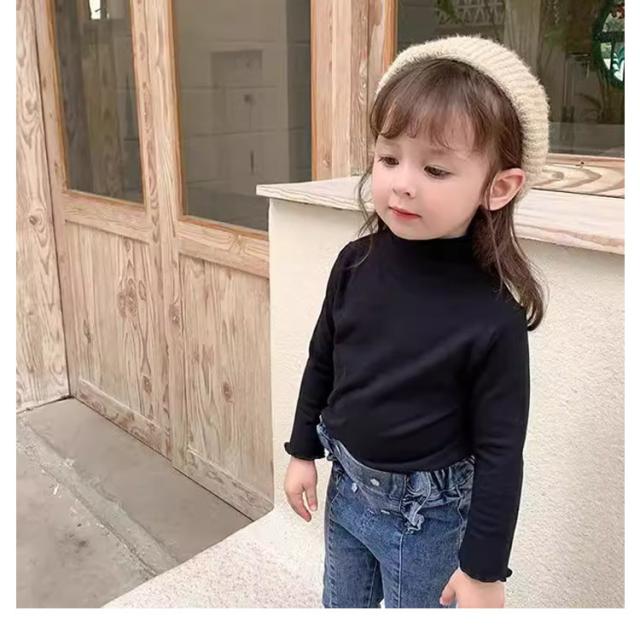 Tシャツ 小学生 長袖 子供服 秋冬 タートルネック キッズ ハイネック 女の子 暖かい 幼稚園 インナーシャツ 90 防寒 無地 柔らかい プルオーバー 暖かい Tシャツ 部屋着 可愛い フリル 100 110 120 130 140