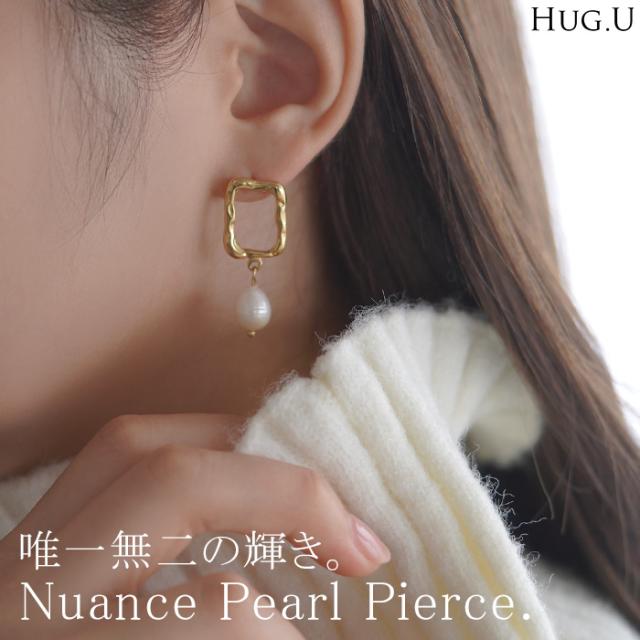 ピアス パール アクセサリー レディース ぶら下がり パールピアス 真珠 大ぶり アクセ おしゃれ ニュアンス 人気 両耳用 変形 揺れる ゆれる スウィング スクエア バロックパール 大人 パーティー 女性 結婚式 ゴールド シルバー 秋 冬 HUG.U 秋新作