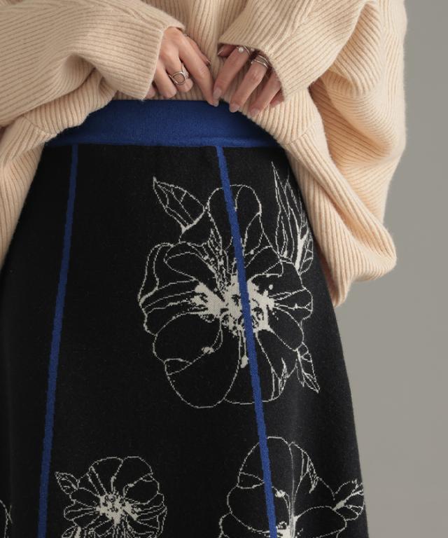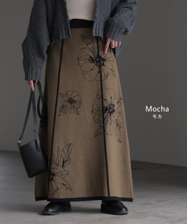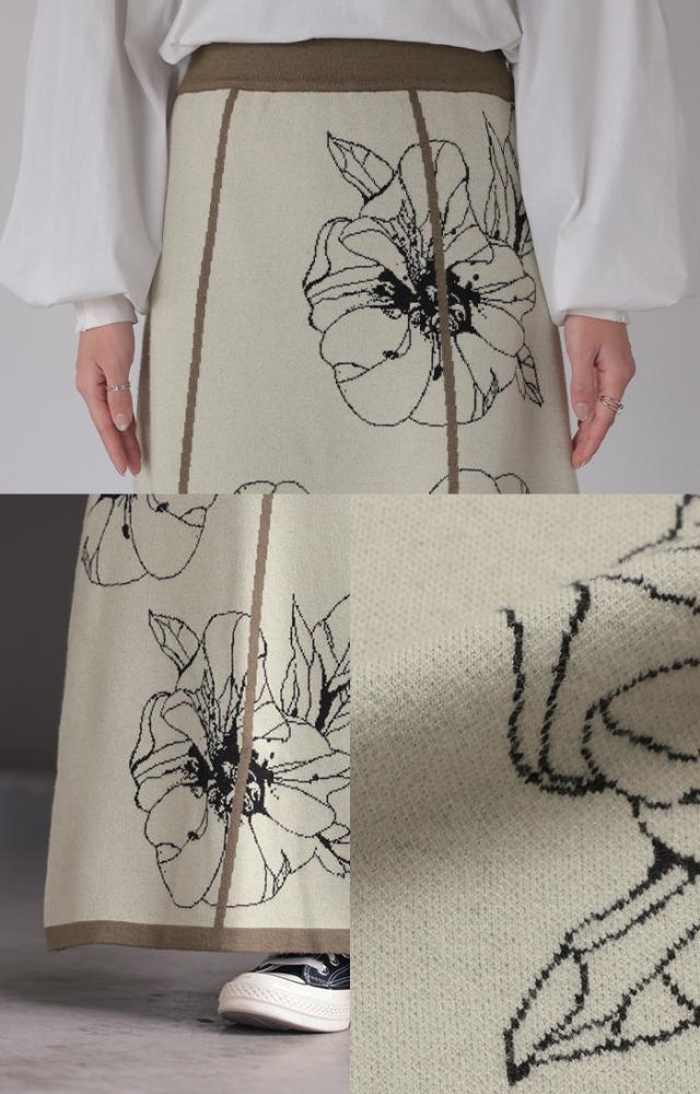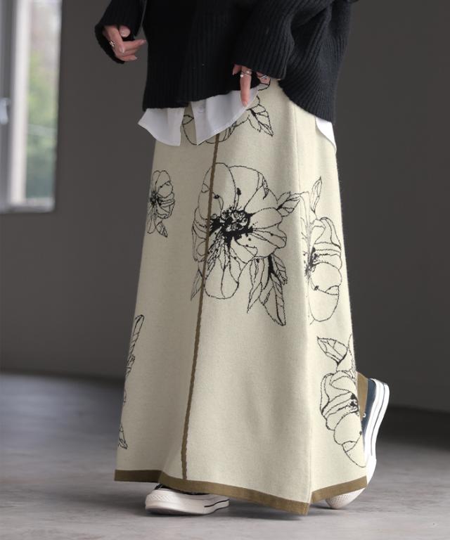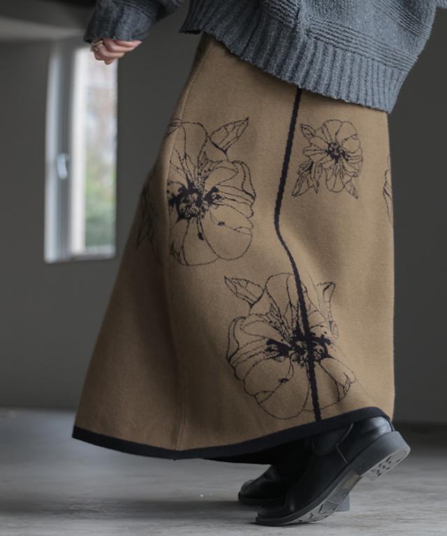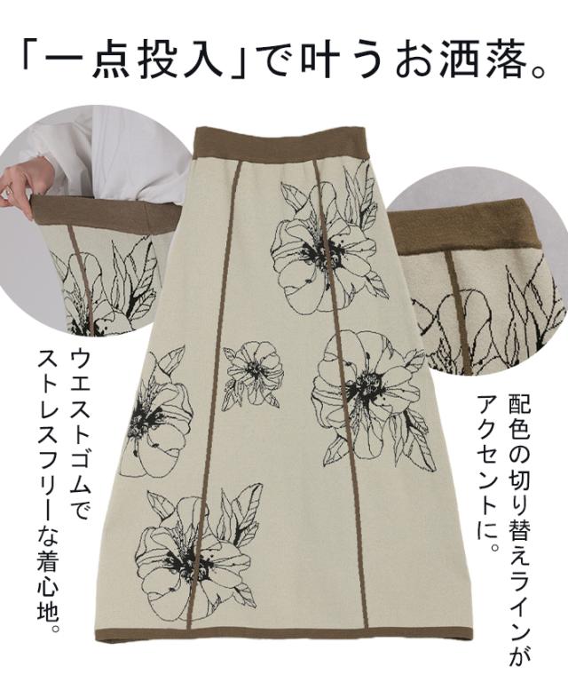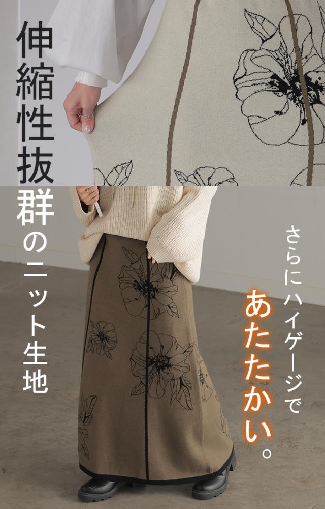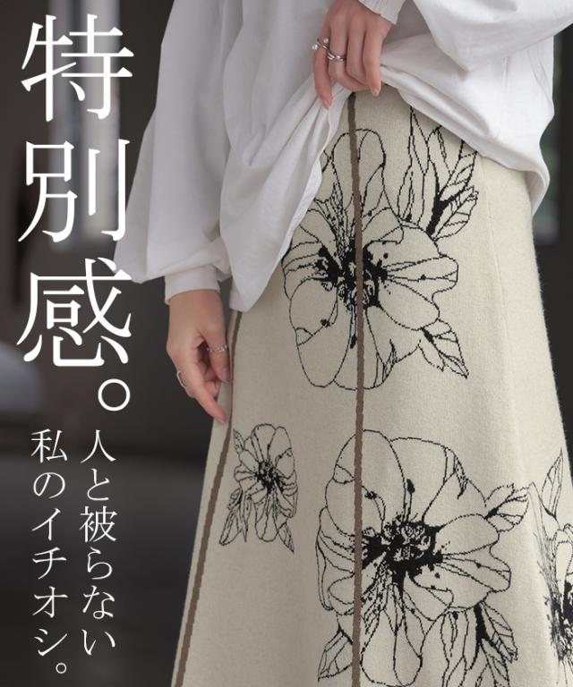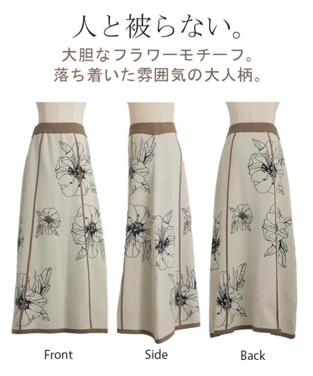 ソフトな肌触りのクラシカルフェミニンな花柄ニットスカートです。