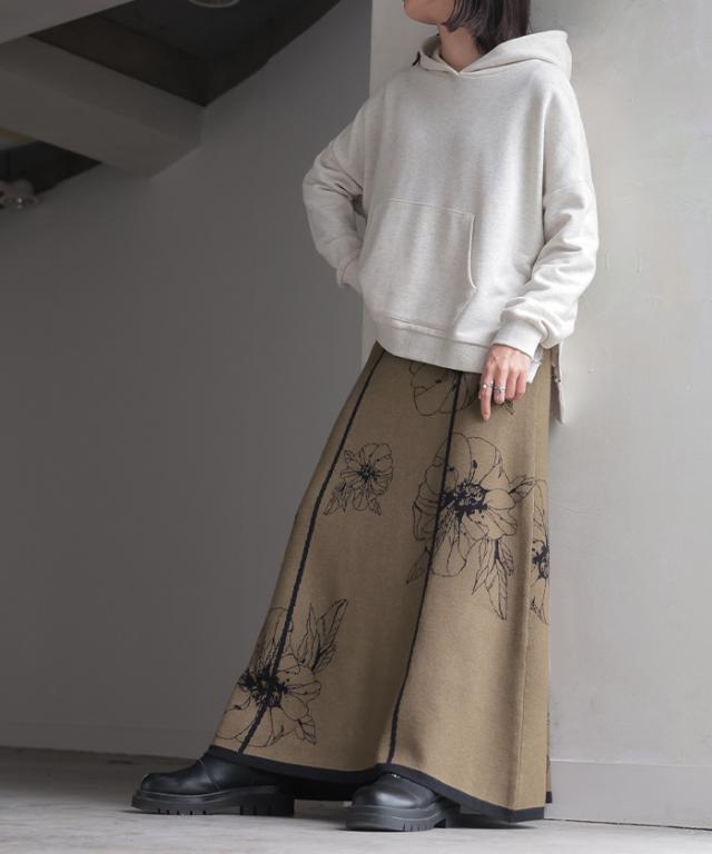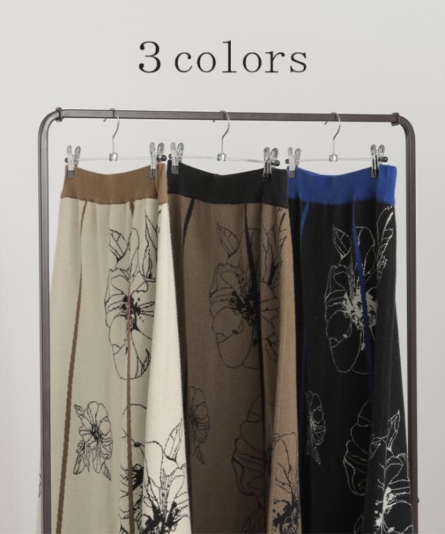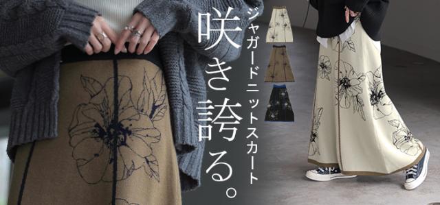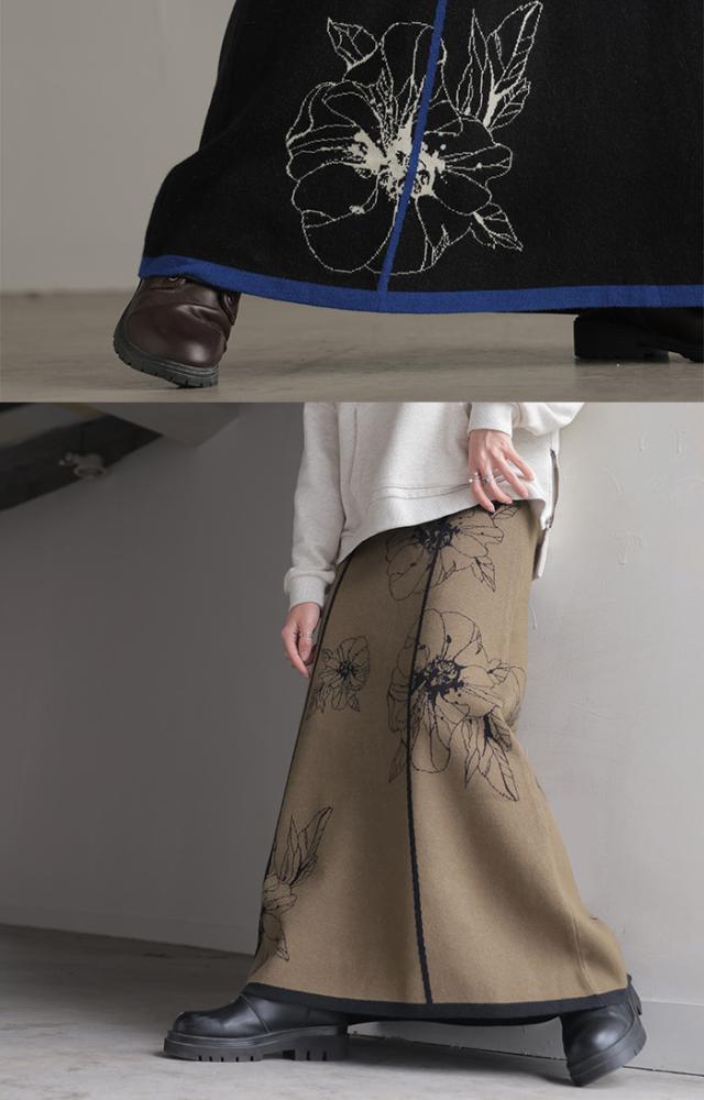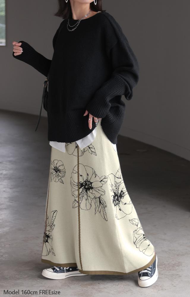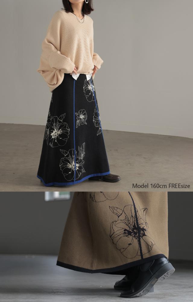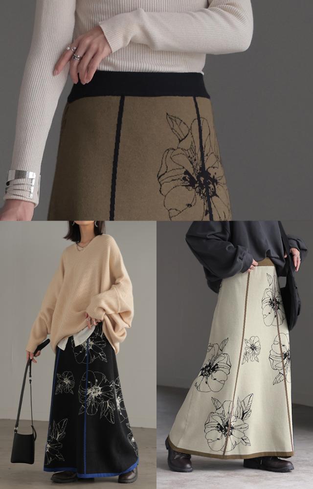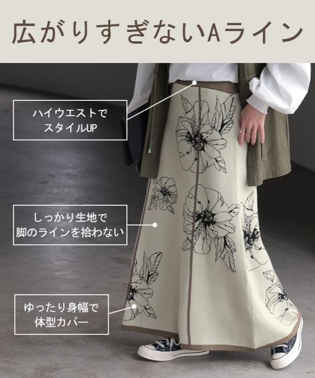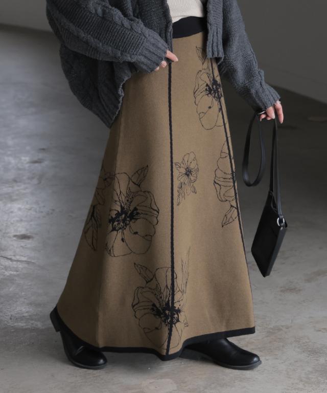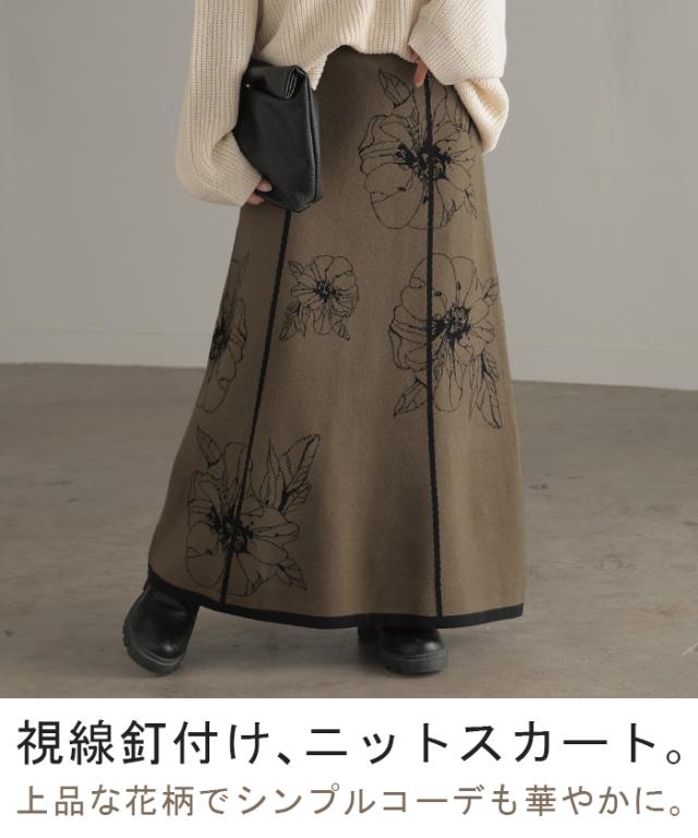 ソフトな肌触りのクラシカルフェミニンな花柄ニットスカートです。