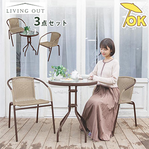 ガーデンテーブルセット 2点セット チェア 1人掛け ガーデンセット ガーデニング テーブル ラタン調 ファニチャー リラックス ガーデンセット 編みこみ おしゃれ 庭 積み重ね スタッキング ガラステーブル カフェ アジアン テラス エスニック
