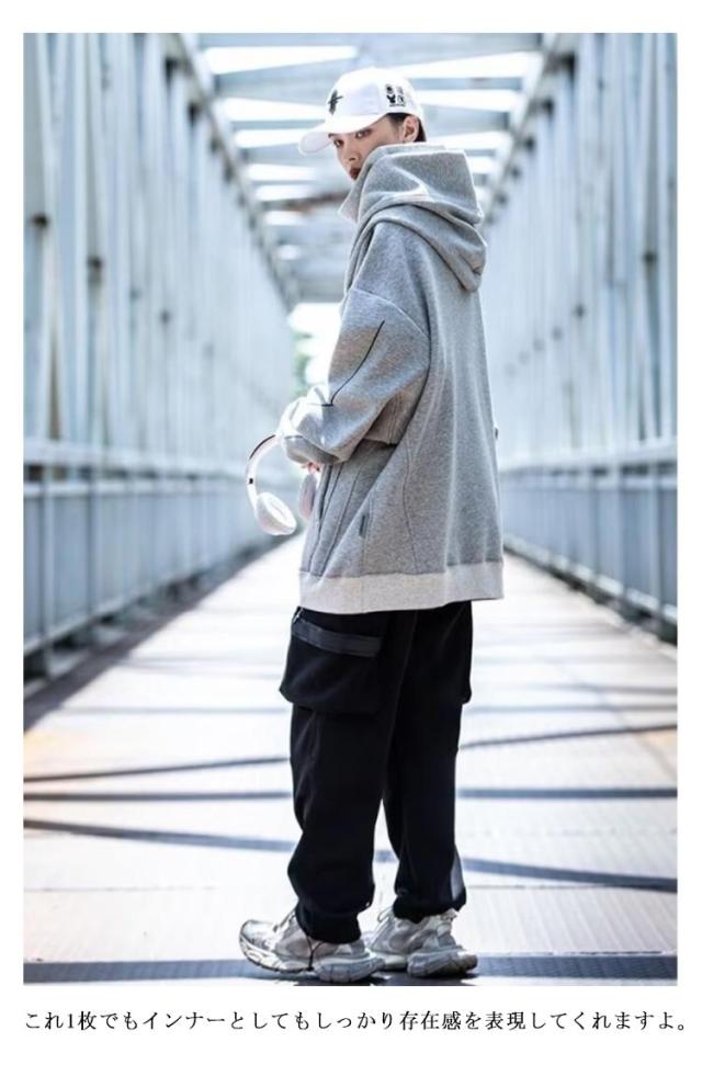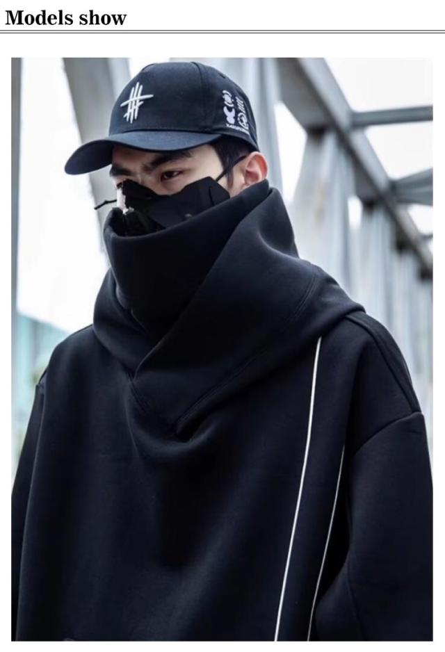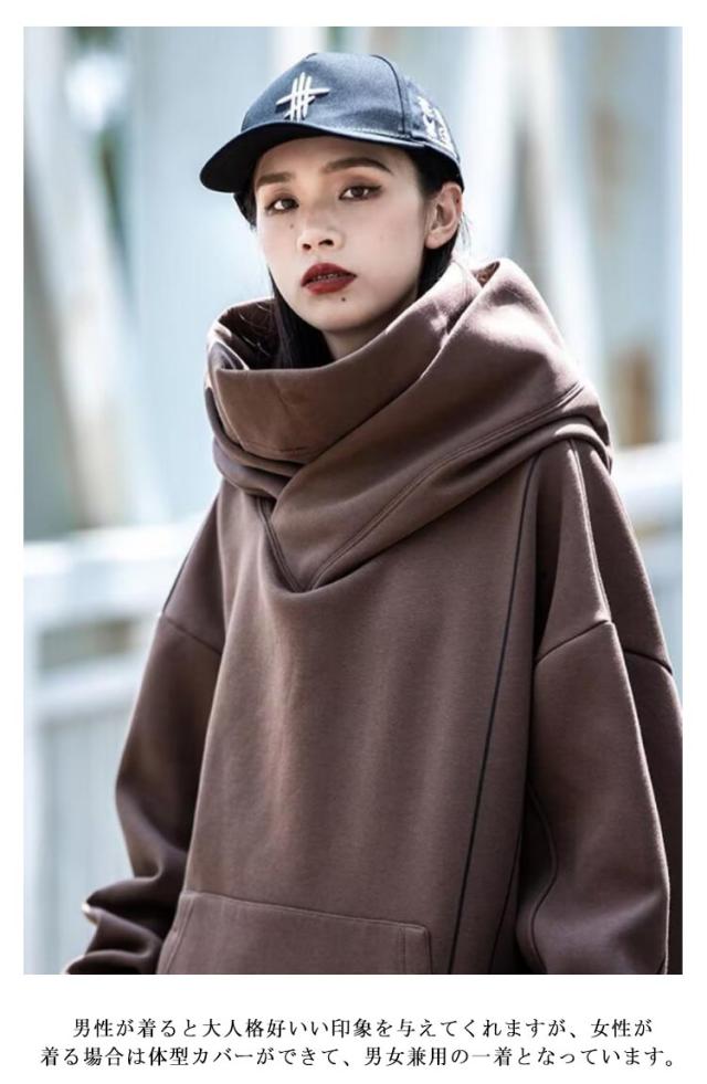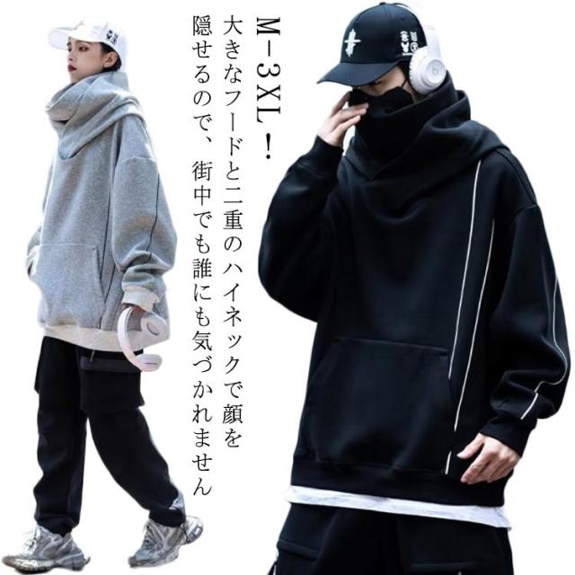 | M-3XL!大きなフードと二重のハイネックで顔を隠せるので、街中でも誰にも気づかれません このフード付きスパーカーを着て街を歩けば、とても安心感があります! 首元のデザインが今までに無い、斬新なデザインのフード付きパーカーが登場しました。 一見すればマスクやスカーフのようなデザインが首元に施されており、ストリート感タップリ生地はさらさらとした生地感で長い期間着用できてコーデの幅も広がります。 これ1枚でもインナーとしてもしっかり存在感を表現してくれますよ。 男性が着ると大人格好いい印象を与えてくれますが、女性が着る場合は体型カバーができて、男女兼用の一着となっています。 | |