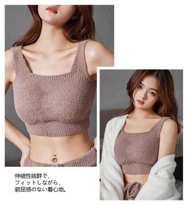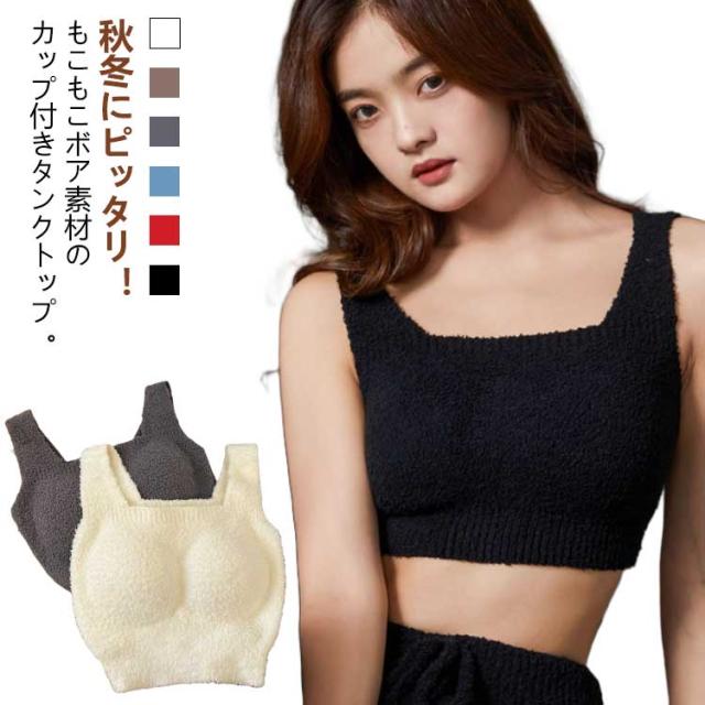 ボアビスチェ 暖かい フリース スクエア 防寒 ブラトップ 秋冬 ボアキャミソール 保温 インナー パッド付きキャミ もこもこ 伸縮性 厚手ブラキャミ 部屋着 ふわふわ 垂れ防止 カップ付きニットタンクトップ 見せるブラジャ