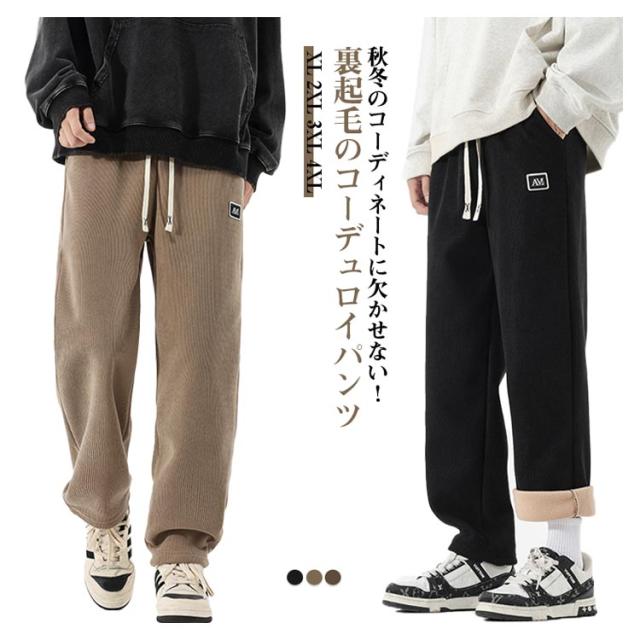 厚手 コーデュロイパンツ メンズ コーデュロイパンツ ワイドパンツ ワイド 秋冬 裏起毛 ストレート 暖パン 暖かい 防寒パンツ 防寒 裏起毛パンツ カジュアルパンツ コーデュロイ 保温 イージー ゆったり 通勤 通学 カジュアル 大きいサイズ 韓国風 おしゃれ