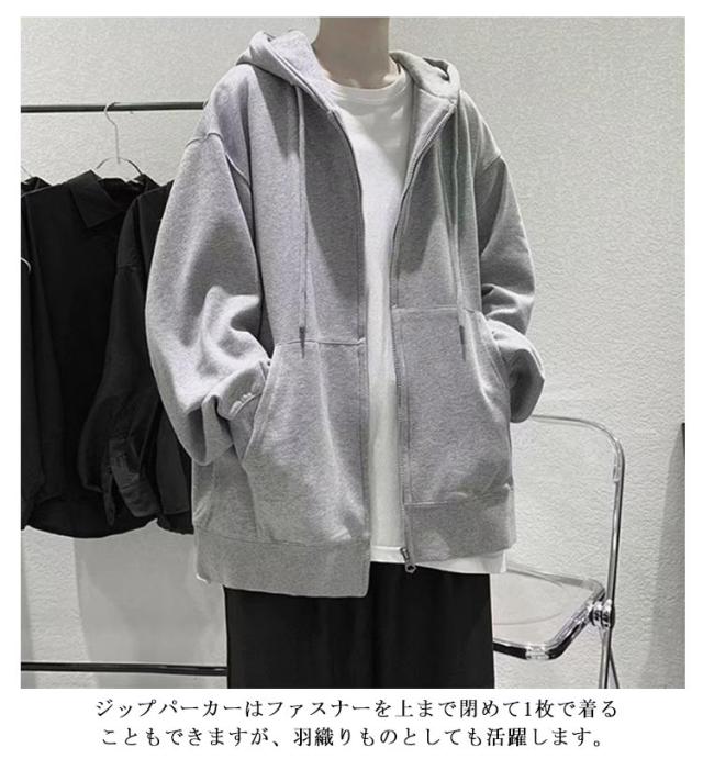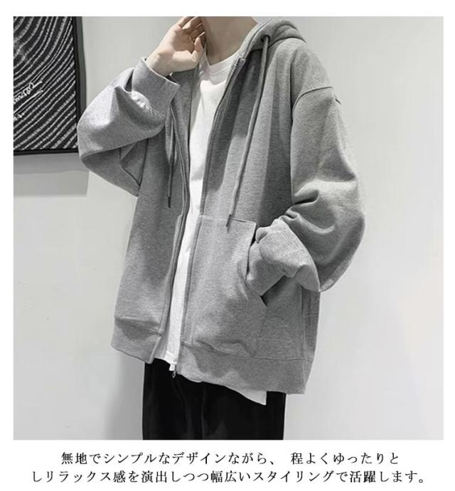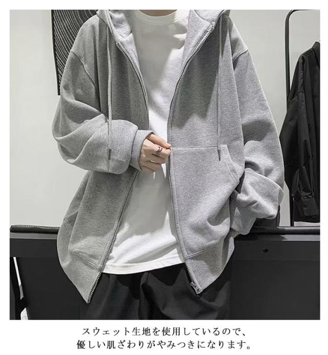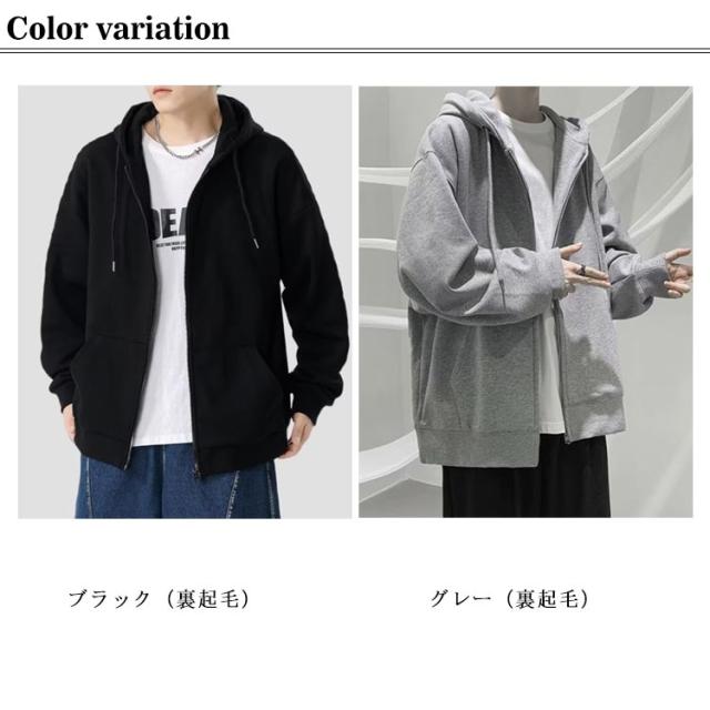 | M-5XL!季節を問わず着回せる、1枚あると便利な裏起毛ジップパーカー。 スウェット生地を使用しているので、優しい肌ざわりがやみつきになります。 ジップパーカーはファスナーを上まで閉めて1枚で着ることもできますが、羽織りものとしても活躍します。 無地でシンプルなデザインながら、 程よくゆったりとしリラックス感を演出しつつ幅広いスタイリングで活躍します。 Tシャツやカットソーの上から羽織るだけで、コーディネートが簡単に決まります。 | |