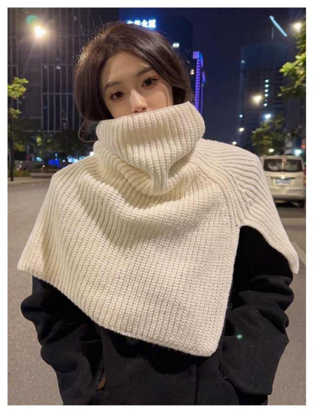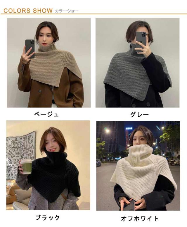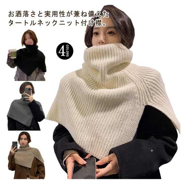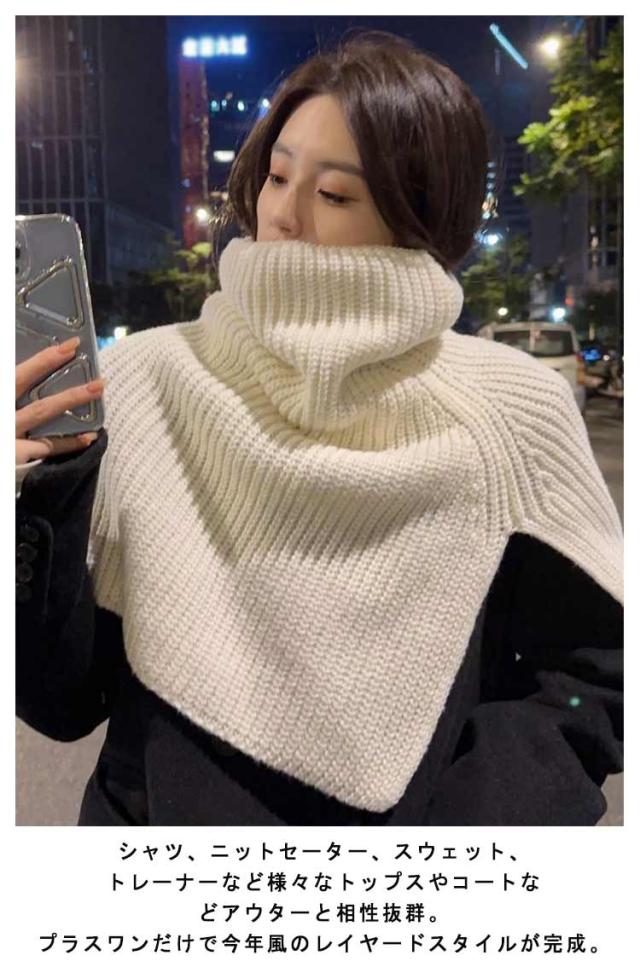 ニットポンチョ レイヤード タートルネック 肩掛け ハイネック ニット付け襟 ニットケープ レイヤード あぜ編み 衿 ニットポンチョ 重ね着 ニットベスト ショート丈 ニット ベスト セーター ポンチョ ネックウォーマー スヌード マフラー
