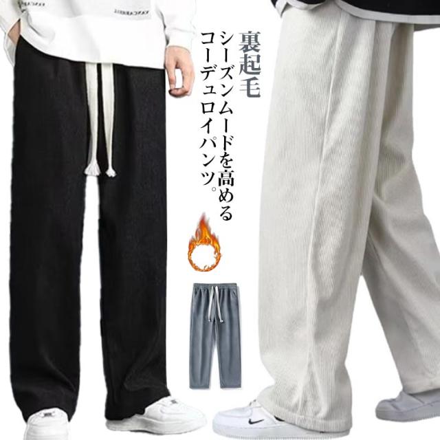 秋冬 ワイドパンツ 裏起毛 通学 コーデュロイ 暖パン 厚手 保温 コーデュロイパンツ 防寒パンツ 防寒 暖かい 裏起毛パンツ ワイド カジュアルパンツ 裏起毛 イージー ストレートパンツ 通勤 カジュアル ゆったり 大きいサイズ 韓国風 無地 シンプル 学生