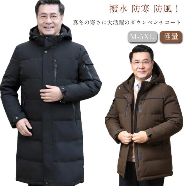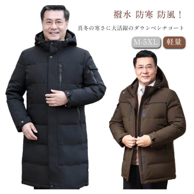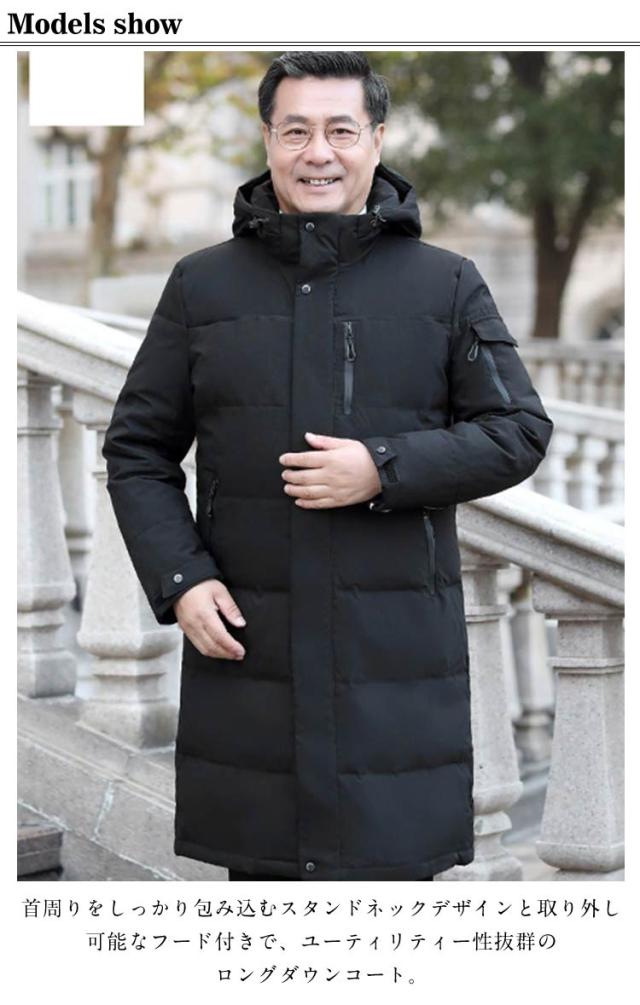 メンズ 通勤 ベンチコート ダウンジャケット ロングコート 90%ダウン 羽毛 暖かい ハイネック フード付き 撥水 ひざ下丈 秋冬服 冬服 厚手 ダウンコート ダウンコート おしゃれ アウター 通学 旅行 ビジネス カジュアル スポーツ観戦