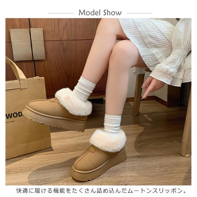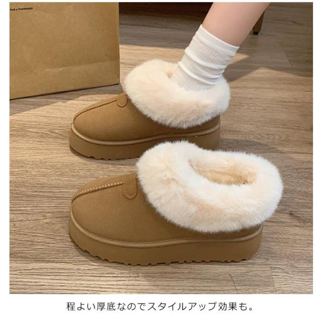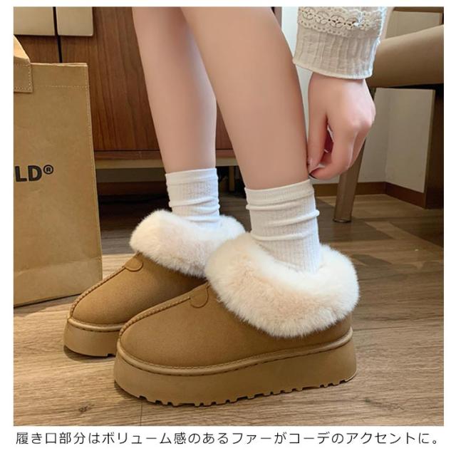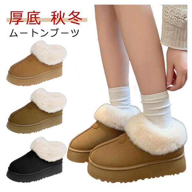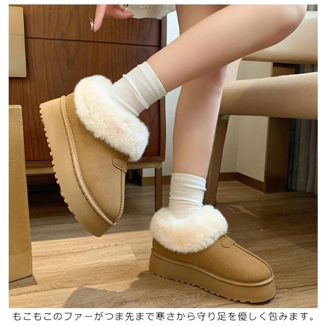 ショート丈 美脚 厚底 防寒 暖かい スノーブーツ 歩きやすい 防滑 もこもこ ムートンブーツ 疲れない 軽量 ムートン風 ファー ボア 秋冬 ムートンブーツ 大きサイズ
