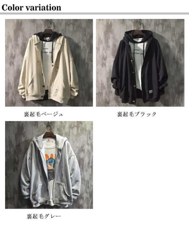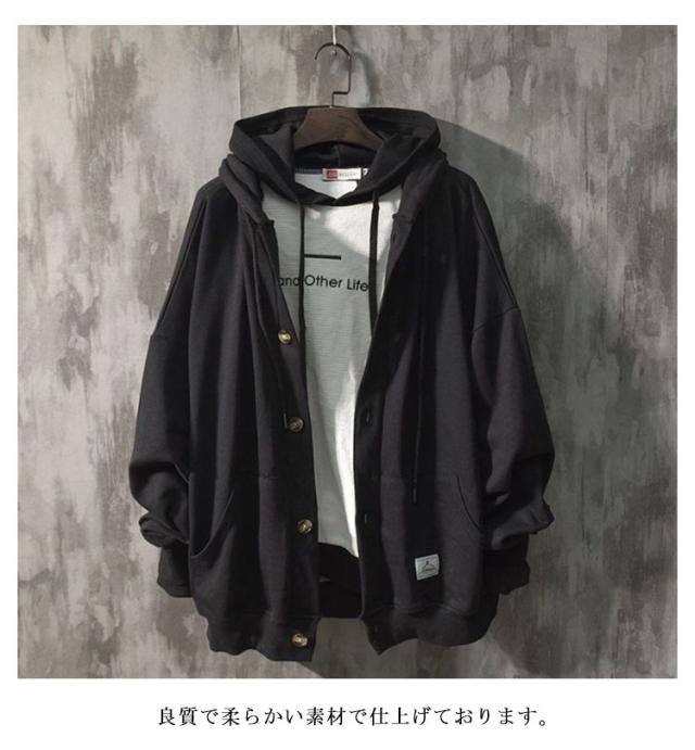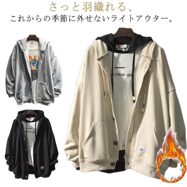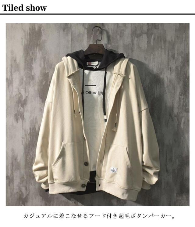 裏起毛 パーカー メンズ スウェット 裏起毛 厚手 長袖 アウター ボタンパーカー フード付き トップス ゆったり 体型カバー 大きいサイズ 羽織 パーカー スタジャン ジャンパー ブルゾン 前開き ボタン留め カーディガン 春 秋 送料無料