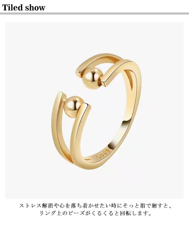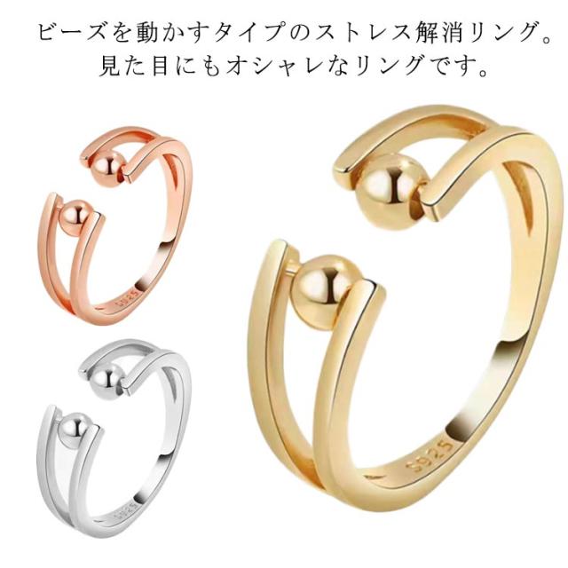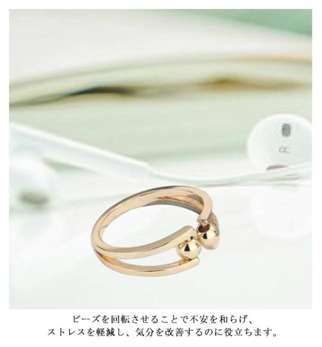 送料無料 指輪 オープンリング レディース 女性 アクセサリー リング 指輪 ビーズ カラフル くるくる ストレス解消 リング 回転ビーズ 調節可能 オープンセット 不安解消 リング ストレス解消リング ゴールド シルバー ローズゴールド ブラック