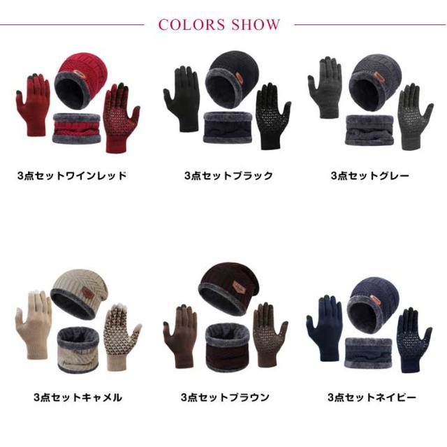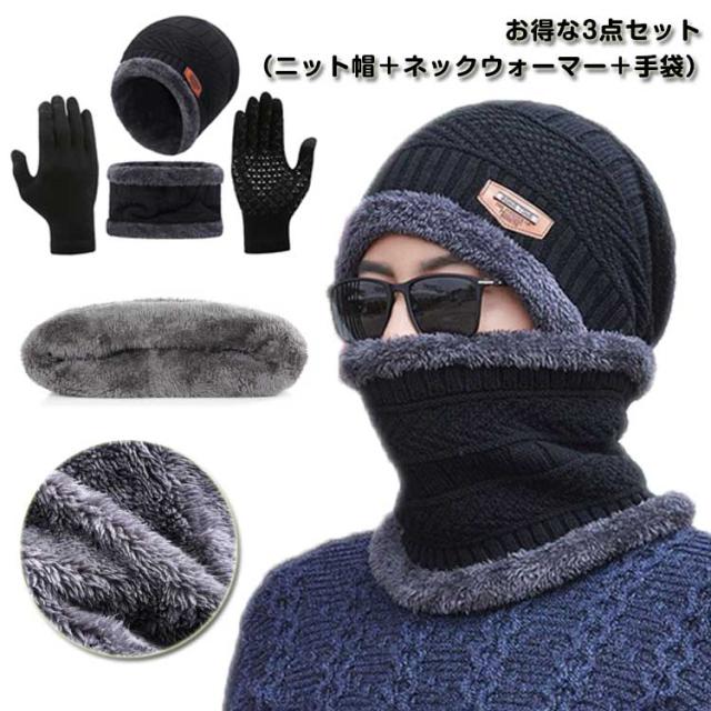 3点セット【ニット帽+ネックウォーマー+手袋 】メンズ 冬 防寒 防風 ふわふわ 裏起毛 美シルエット レディース 防寒帽子 防寒ニット帽 暖かい 厚手 保温 伸縮性 通気性 柔らかい ロゴ付き 無地 ニット帽子メンズ ニットキャップ ビーニー