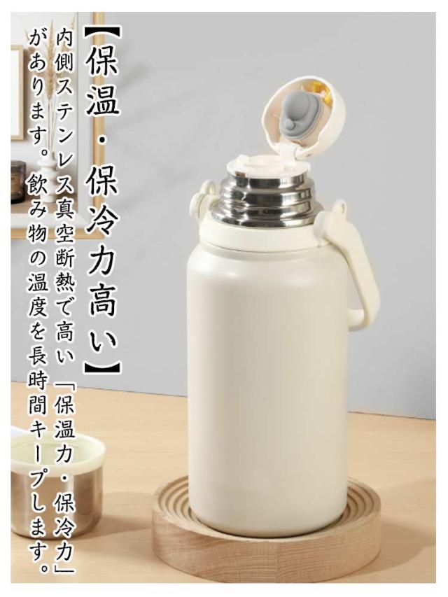 | 保温保冷できる大容量水筒ボトル! 直飲みとコップ飲みの2WAYでアウトドアにも使いやすい。 【保温・保冷力高い】内側ステンレス真空断熱で高い「保温力・保冷力」があります。飲み物の温度を長時間キープします。 【密閉・漏れない】全方位の密閉構造で飲み物の漏れを防止できます。 【コップ飲み・直飲み2WAY】コップ付きなので、熱々の物も安全に飲めます。 【持ち運び便利】持ち手&長さ調整できるショルダー付き、持ち運びに便利です。 【900ml、1200ml、1500mlの3サイズ】3つの容量が選べるので、屋外の水分補給のニーズを満たすことができ、オフィス、学校、フィットネスなどの長期的な作業シナリオに非常に適しています。 | |