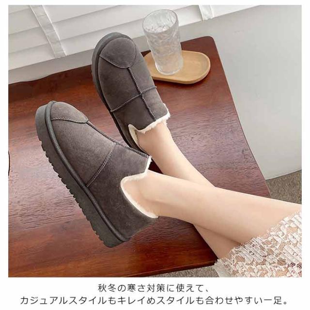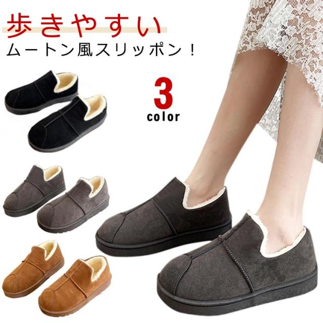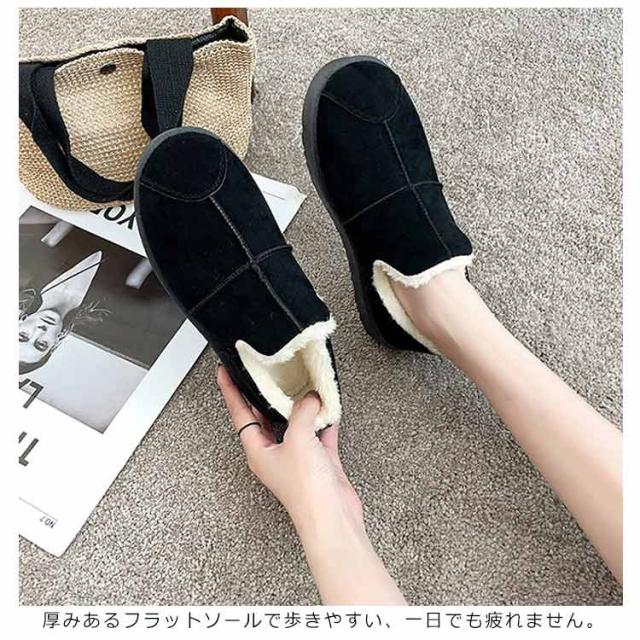 スノーブーツ スリッポン レディース ボア ムートンブーツ 送料無料 裏起毛 フラットシューズ 冬用 ムートンブーツ 防寒靴 ムートン調 ぺたんこ 防滑 大きサイズ