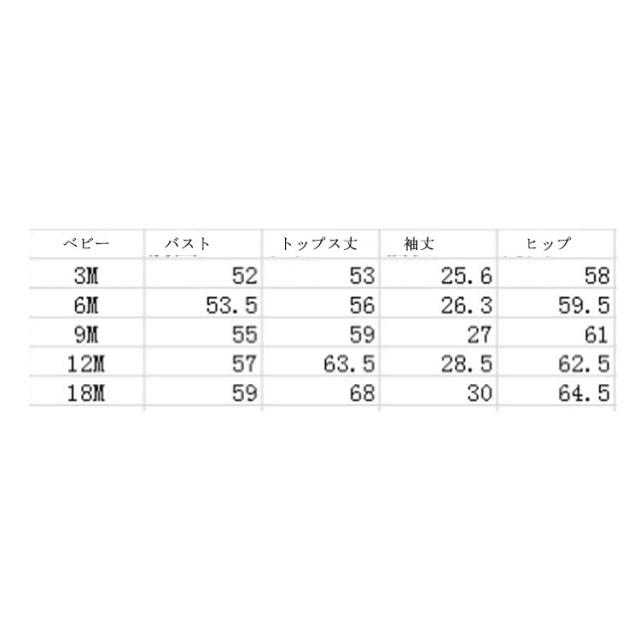 | サイズ | ベビー-3M ベビー-6M ベビー-9M ベビー-12M ベビー-18M |