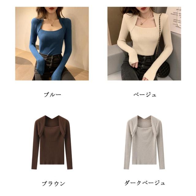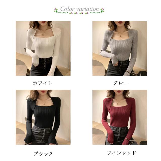 冬 セーター ニット 秋 スクエアネック 大人 レディース 着回し インナー プルオーバー カットソー リブニット 長袖 きれいめ 着痩せ タイト オフィス 上品 カジュアル