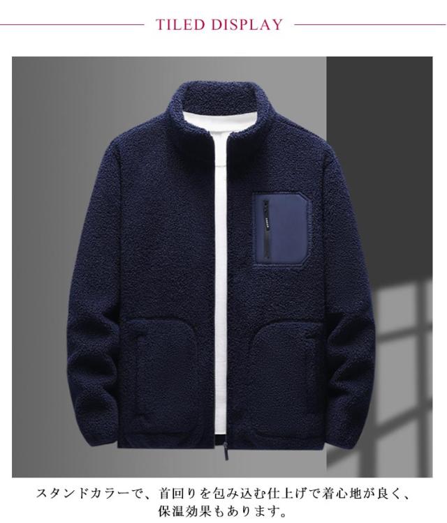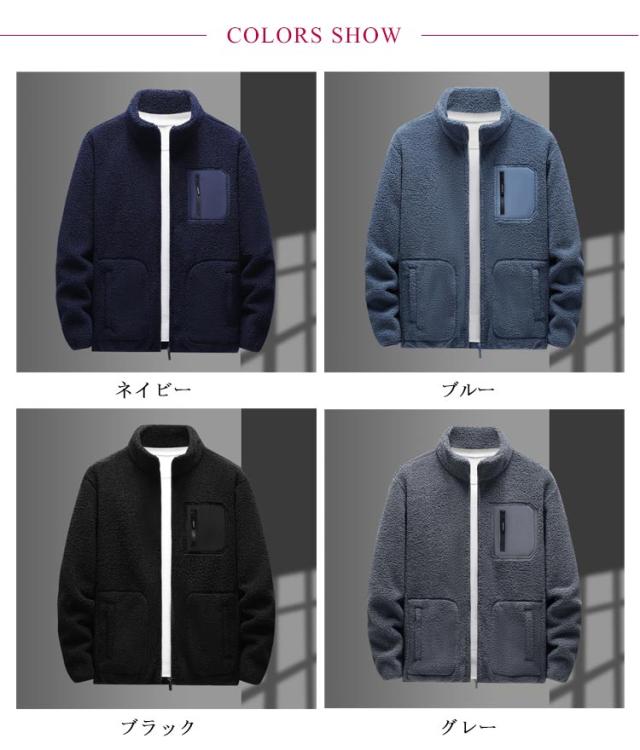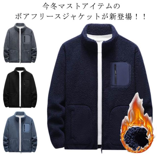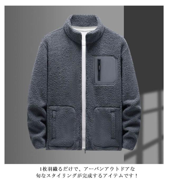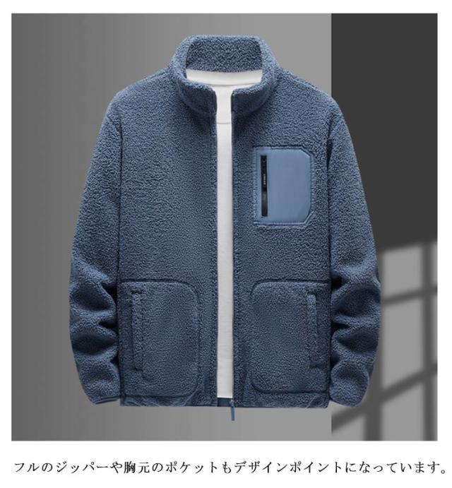 ボアジャケット ブルゾン 胸ポケット付き メンズ ボアブルゾン ブルゾン スタンドカラー ゆったり ブルゾン 厚手 もこもこ 防寒 防風 保温 秋冬服 アウトドア 大きいサイズ 暖かい スポーツ