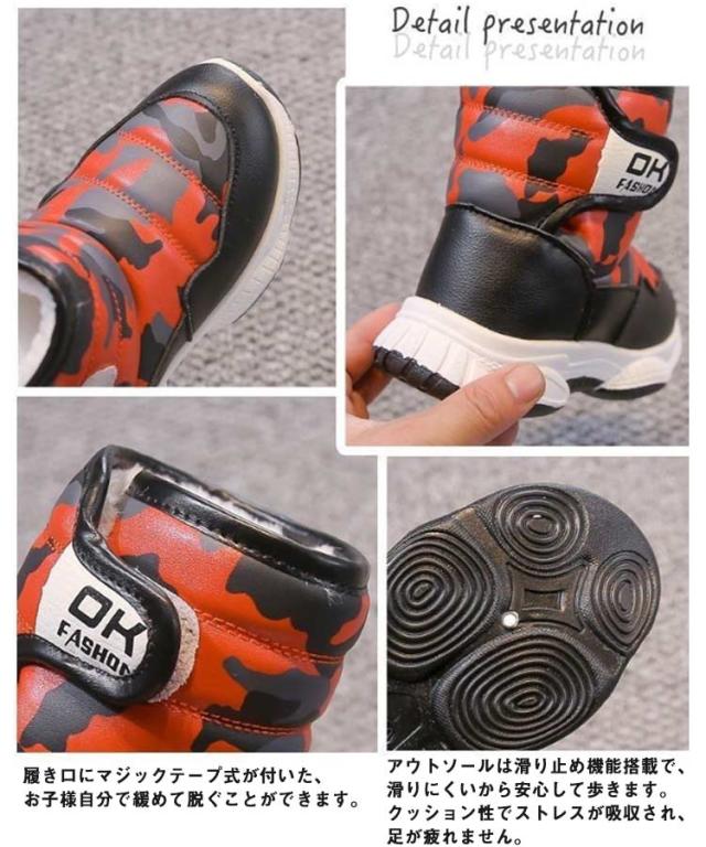 | 軽く、暖かく、カジュアルなデザインは、ファッション性も高いため寒冬にはピッタリなブーツです 防水、防風、拭くだけでクリーンに簡単!スキーや雪遊びなどではとても便利です。 アウトソールは滑り止め機能搭載で、滑りにくいから安心して歩きます。クッション性でストレスが吸収され、足が疲れません。 履き口にマジックテープ式が付いた、お子様自分で緩めて脱ぐことができます。 冬のアウトドアスタイルにぴったりです。冬のお出かけ、通学、雪遊びに最適です。 | |