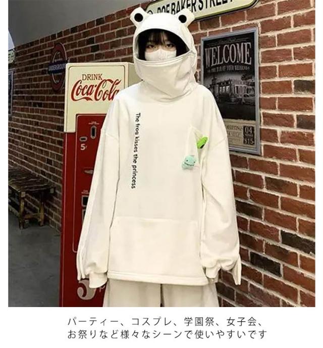 | 超オススメのアイテム!カエルの姿をしていて、とても面白くて可愛いです。 帽子はファスナーで閉じて、キュートな「カエルちゃん」になります。 ゆったりしたデザインなので、ボトムはどんなコーディネートにもぴったりです。 可愛い一面を見せたいなら、スカートと一緒に着るのがオススメです。 パーティー、コスプレ、学園祭、女子会、お祭りなど様々なシーンで使いやすいです。 | |