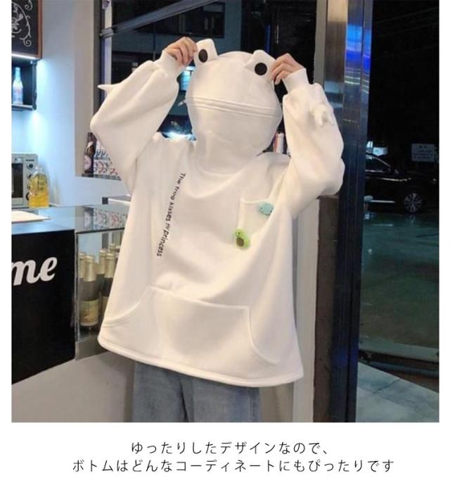 かえる メンズ ビッグシルエット 春秋冬 ゆったり カジュアル トレーナー 萌え レディース パーカー 韓国風 スウェットパーカー 大きいサイズ トップス パーカー 可愛い フード付き 男女兼用 ストリート系 森ガール 送料無料