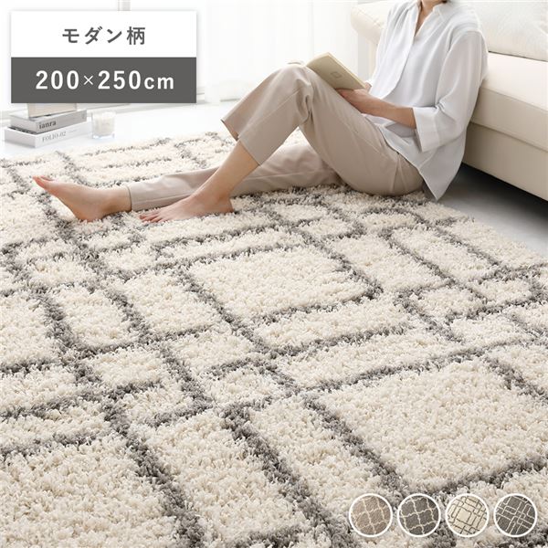 デザイン ラグ マット 約200×250cm モダン柄 アイボリー エジプト製 ウィルトン織 耐久性 シャギーラグ ラグマット ふわふわ じゅうたん フワフワ カーペット 敷き物 絨毯 フロアマット 乳白色 送料無料