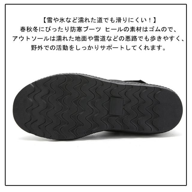 | 【防寒恒温効果】 爪先まで内側全体に覆われた贅沢なボアがあり、 柔らかい肌触りを与えられ、足をしっかり包み込み、 暖かい空気は逃がさず、外からの寒い空気もしっかりシャットアウトしてくれます。 【雪や氷など濡れた道でも滑りにくい!】 春秋冬にぴったり防寒ブーツ ヒールの素材はゴムので、 アウトソールは濡れた地面や雪道などの悪路でも歩きやすく、 野外での活動をしっかりサポートしてくれます。 また、軽量のため長時間履いて活動しても疲れにくい点が魅力。 | |
