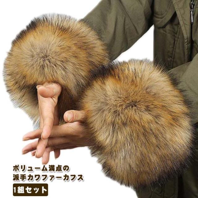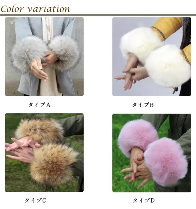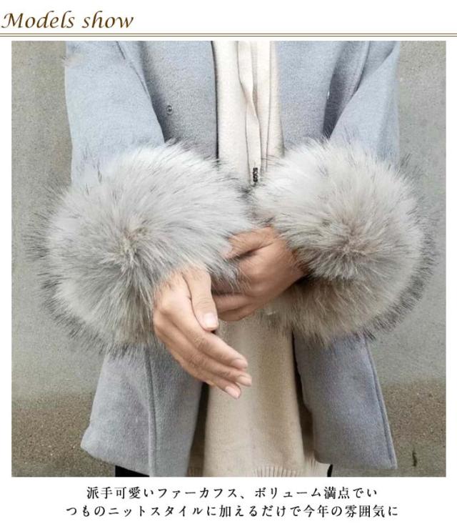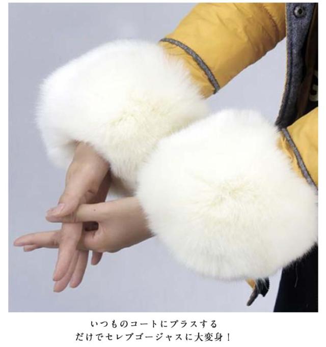 アームカバー 1組セット ファー カフス 袖口ファー レディース アームウォーマー ふわふわ もこもこ コート付け袖 暖かい 腕カバー フェイクファー ボリューム 脱着簡単 防寒 女性用 婦人用 ゴージャス 上品 おしゃれ お出掛け 送料無料