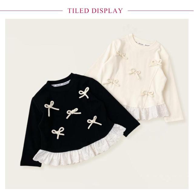 | 超かわいいリボン×レース裾デザインのTシャツ登場! 優れた生地は、アクティブに活動するKIDSにピッタリ! インナーとしてだけでなく1枚着としても使いまわしが出来る万能なアイテム | |