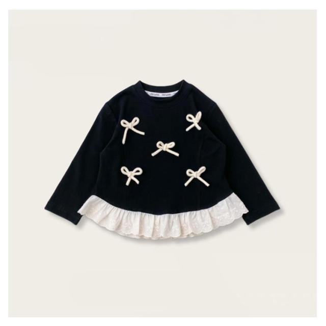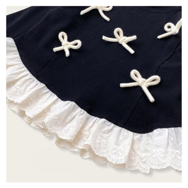 切り替え 超可愛いリボン付き×レース裾デザイン!Tシャツ 超可愛いリボン付き×レース裾デザイン!Tシャツ カットソー おしゃれ 子供服 女の子 トップス ベビー 春 秋 冬 姫系 90cm 100cm 110cm 120cm 130cm 140cm 150cm