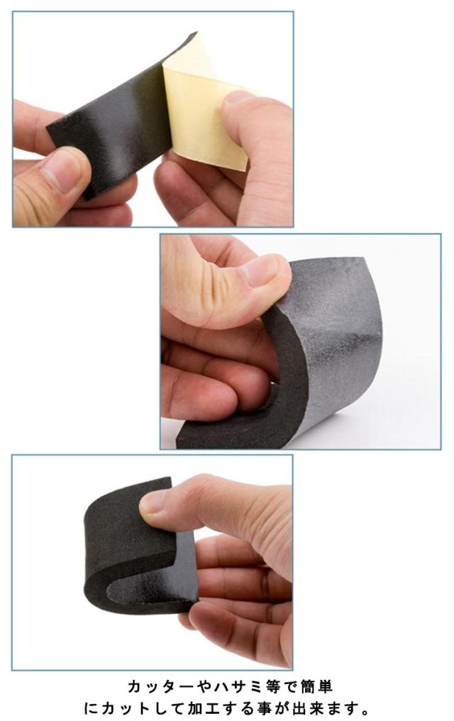 | 耐衝撃性に優れたEVA素材の隙間テープです。 ドアや引き戸、窓のすきま風防止や騒音対策に 裏面の粘着テープで取り付けも簡単! カッターやハサミ等で簡単にカットして加工する事が出来ます。 | |