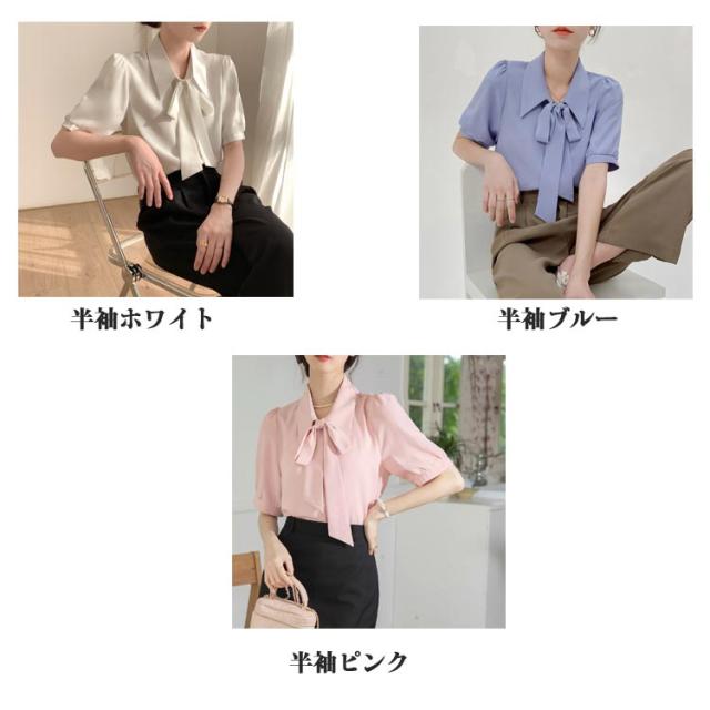 レディース 長袖 ブラウス トップス 仕事 女性 リボン 半袖 リボンタイ ブラウス オフィス シャツ 制服 カジュアル フォーマル ボウタイ 事務服 ビジネス 入園式 おしゃれ 通勤 きれいめ 春