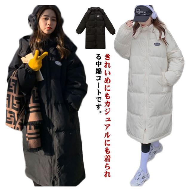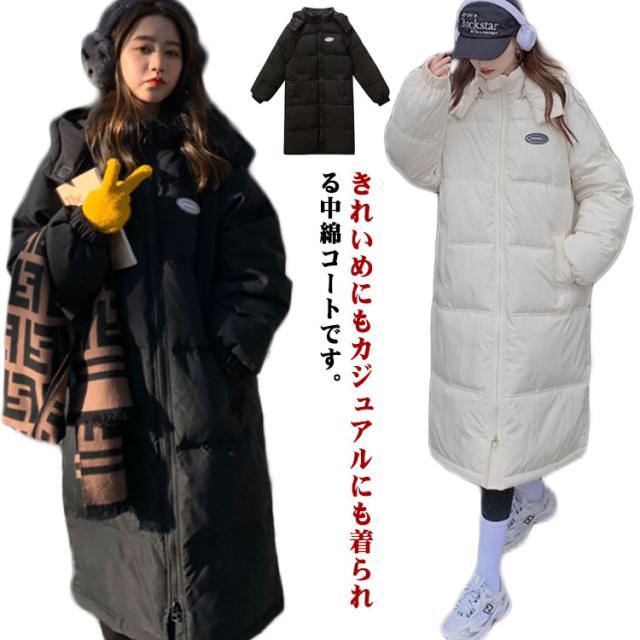 防寒 ファッション 中綿コート ロングコート ジャンパー フード付き レディース アウター 上着 膝下丈 軽量 防風 ゆったり 可愛い ロングコート ベンチコート バイク 通勤 通学 秋冬 暖かい カジュアル お洒落