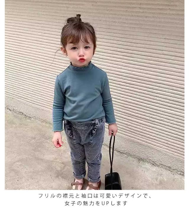 Tシャツ 小学生 長袖 子供服 秋冬 タートルネック キッズ ハイネック 女の子 暖かい 幼稚園 インナーシャツ 90 防寒 無地 柔らかい プルオーバー 暖かい Tシャツ 部屋着 可愛い フリル 100 110 120 130 140